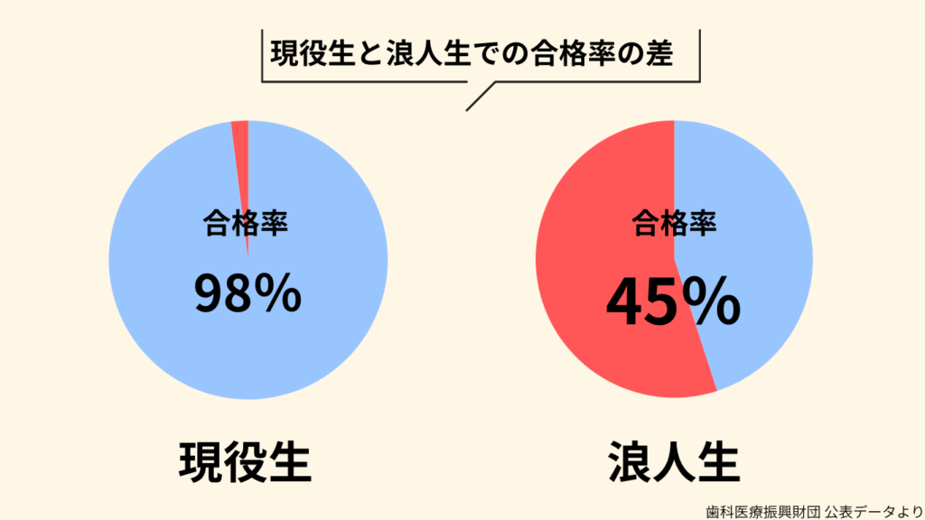 しかし実態は、現役生と浪人生で合格率に40〜50ポイントもの差があります。
